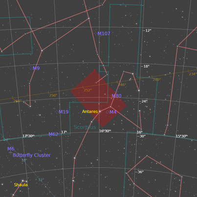 Und auch ein Kugelsternhaufen (M 4) gesellt sich nahe des rechten Bildrandes noch hinzu.